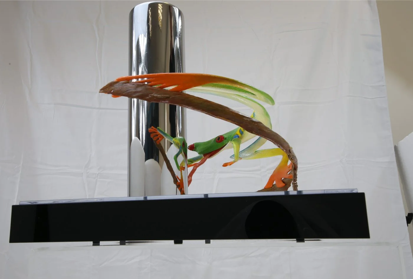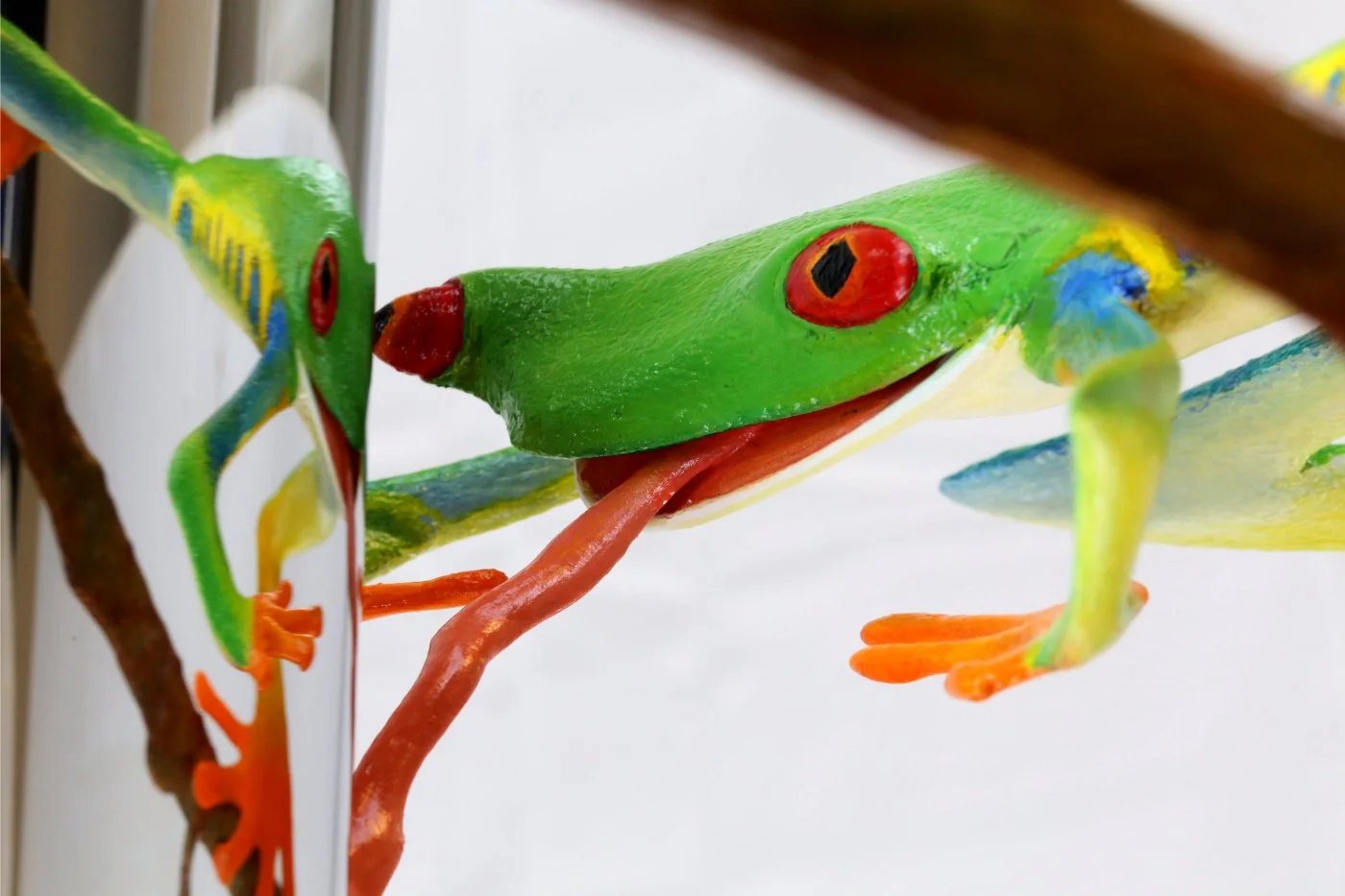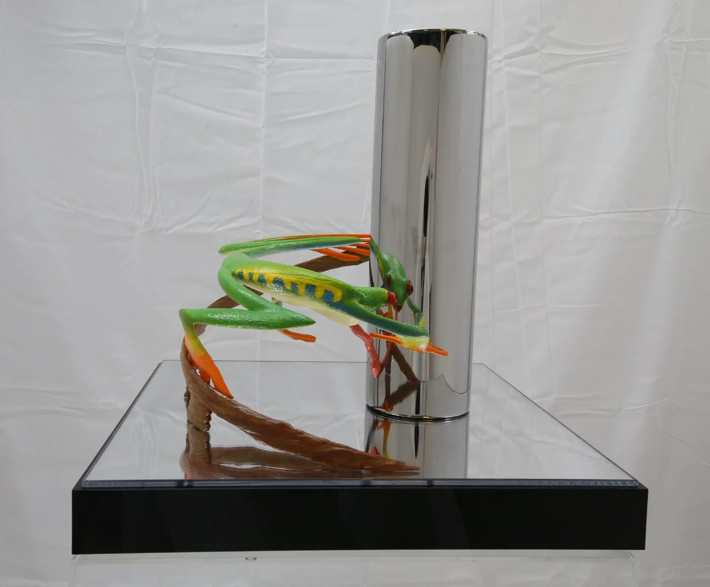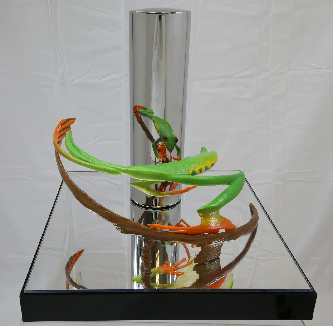 In Alchemy, the Red Eyed Tree Frog returns—not as a symbol of stillness, but of motion, instinct, and pursuit. Inspired by the monumental Alchemical Leap from the 2024 Macau Biennale, now held in the permanent collection of the Macau Museum of Art, this piece carries the story forward.
